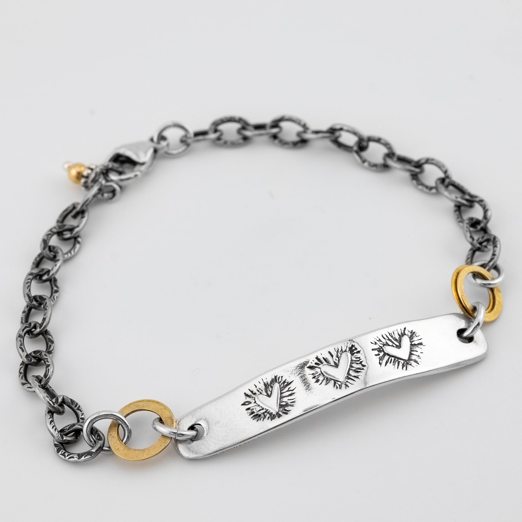 Three hearts placed over deep etching creating a visual reminder that love covers "a multitude of sins". We are all sinners in need of grace; through Christ-like love, we can extend grace and build each other up when we fall. May this piece remind you to love deeply, as Christ loves us.