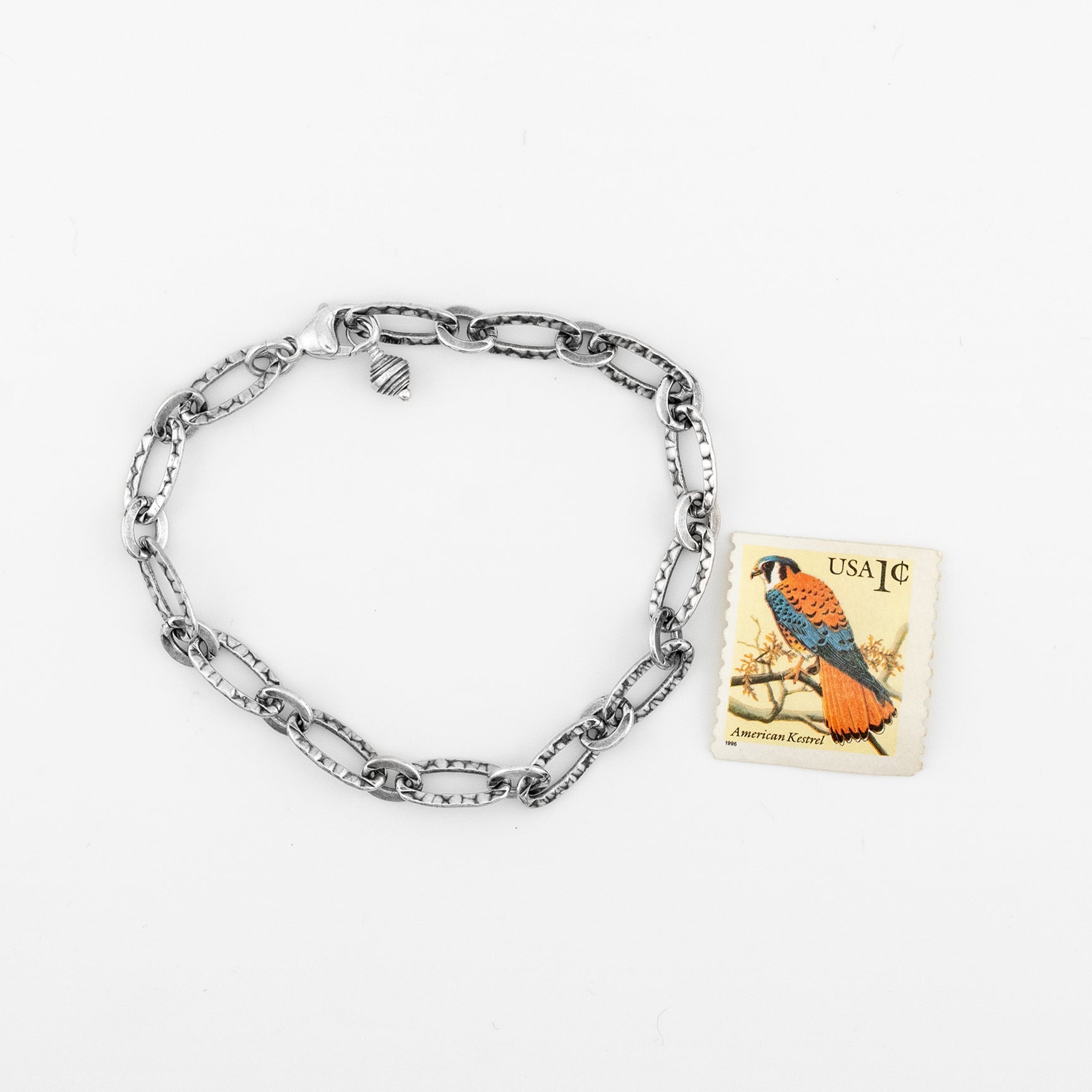 Wear this stunning oxidized charm bracelet, where vintage allure meets bold craftsmanship. Each link is richly oxidized to create a deep, dramatic patina that exudes character and depth, making it a standout piece in any jewelry collection.