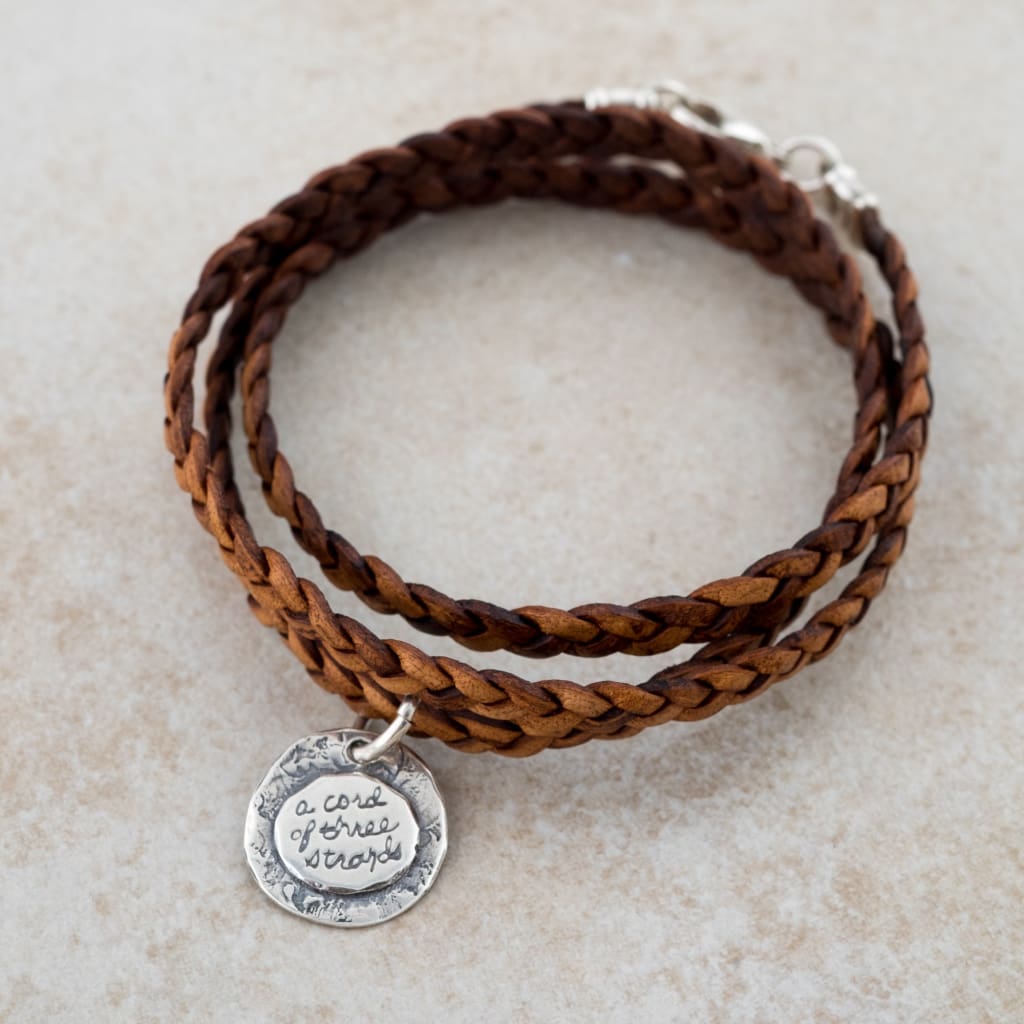 Three leather strands braided together to symbolize Ecclesiastes 4:12, "A cord of three strands is not easily broken.” With Christ at the center ...