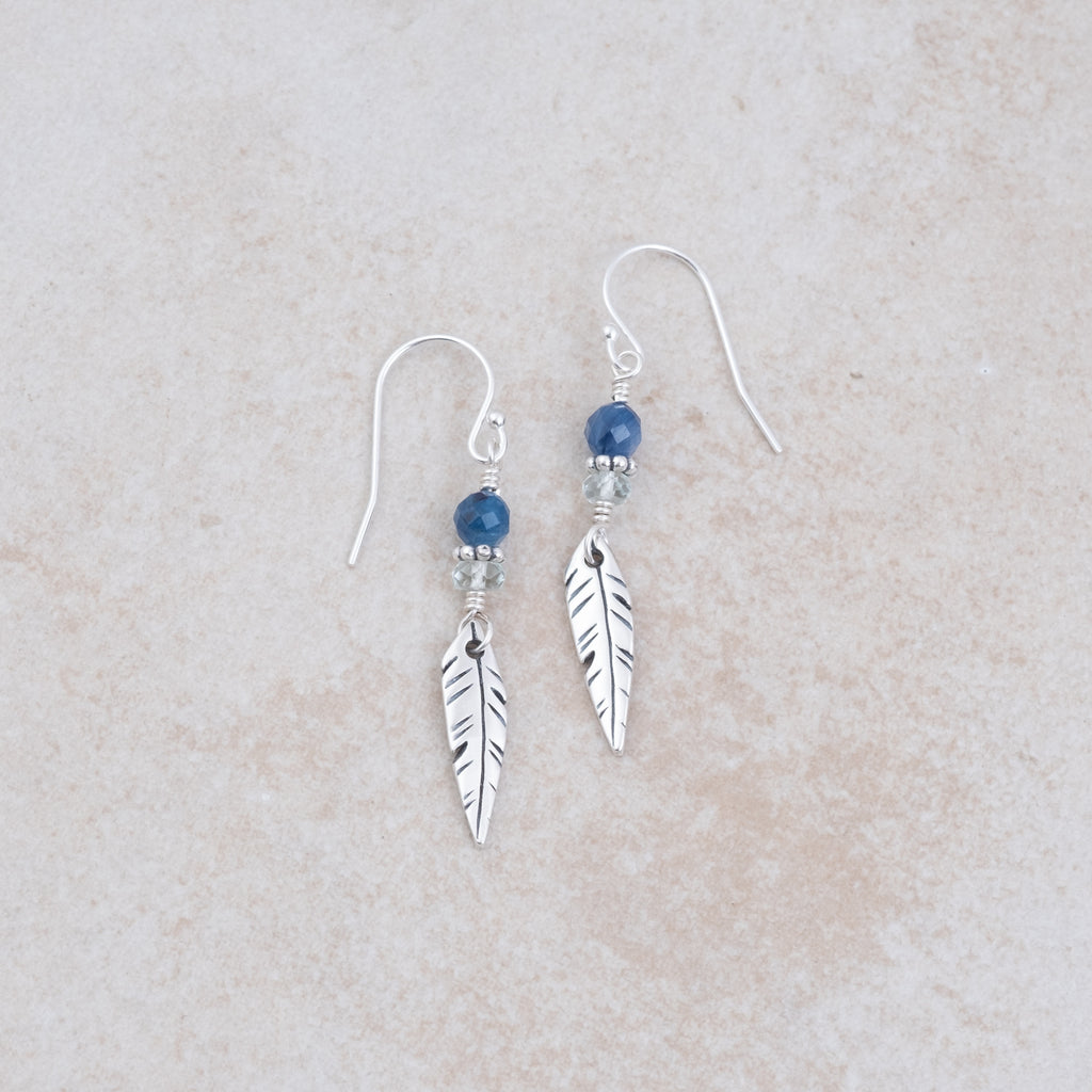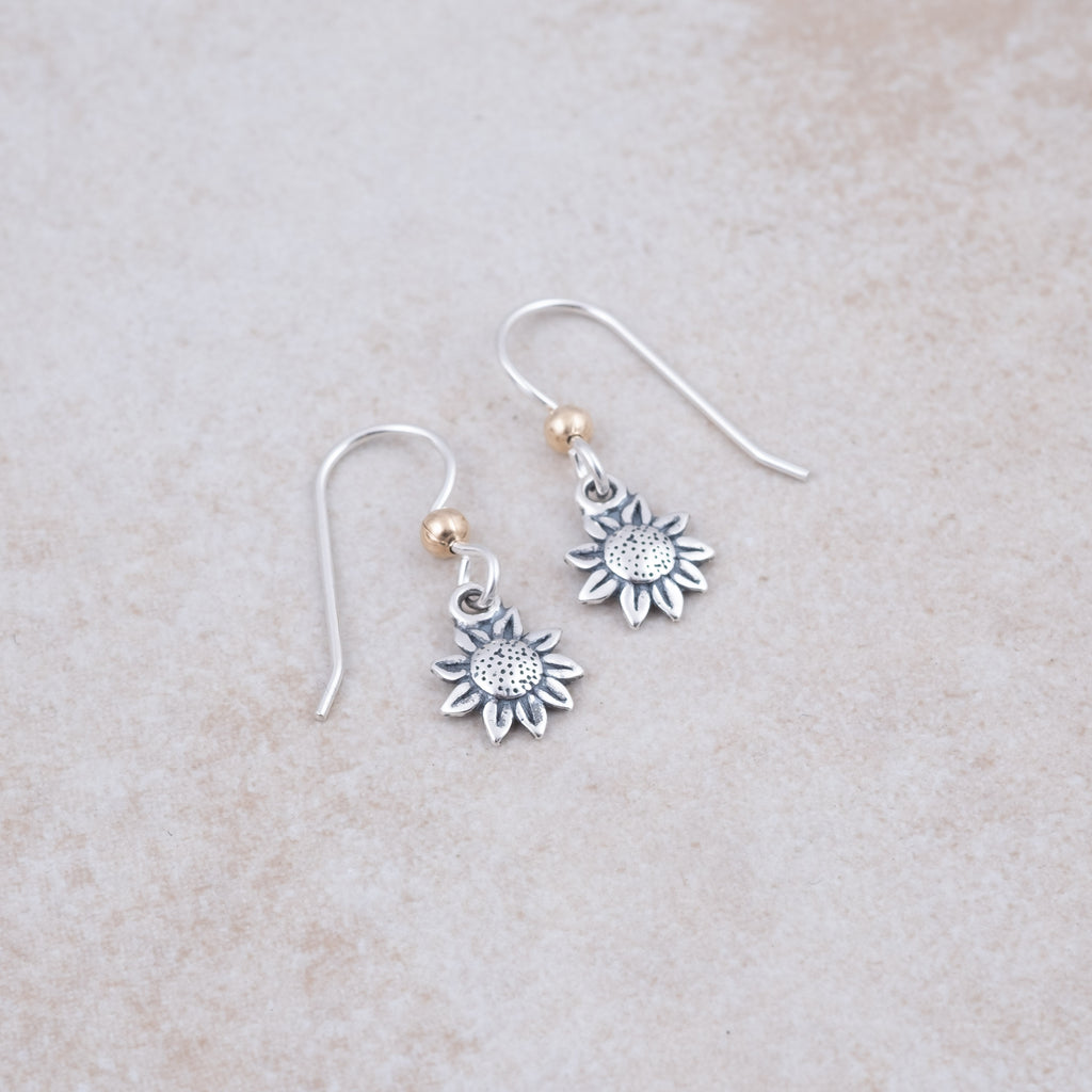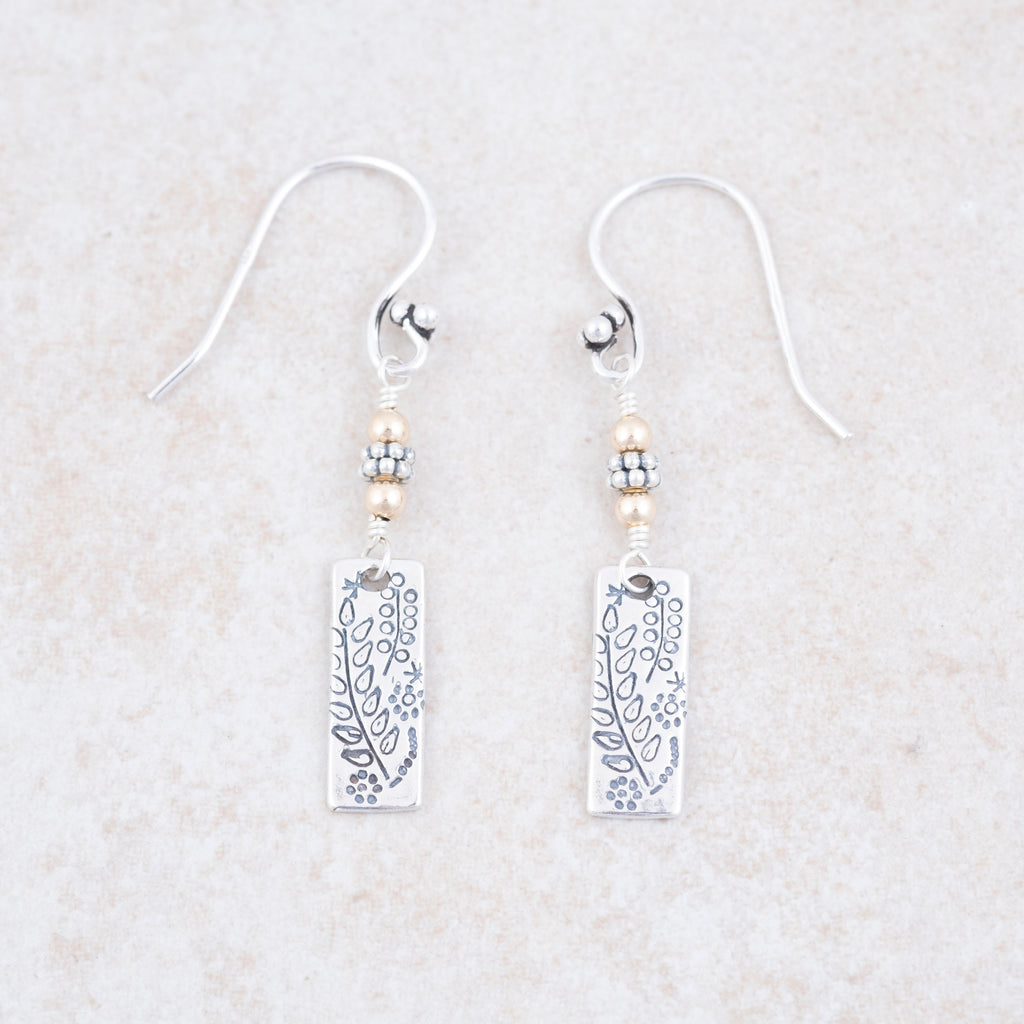 Swirling waves dangle from sterling silver French wires with sterling silver double daisy accents, created to be a wearable reminder of Psalm 46:10, “Be still, and know that I am God; I will be exalted among the nations, I will be exalted in the earth.”