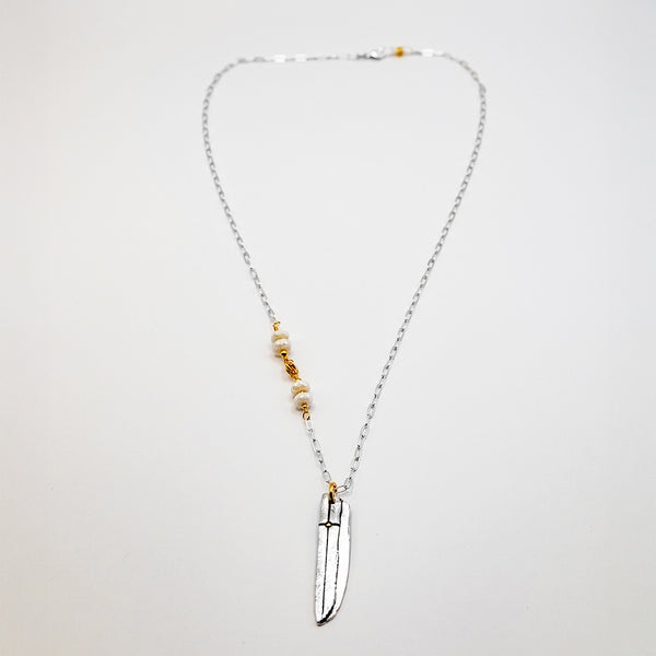 A striking one-of-a-kind design, this handcrafted necklace features a fine silver cross pendant detailed with a 22k gold accent—each mark and text...
