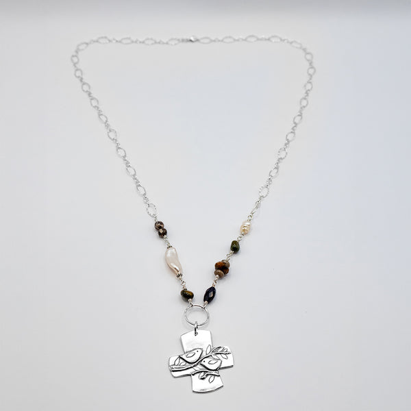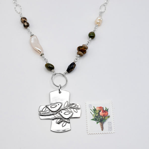 Large Birds of the Air Cross Necklace