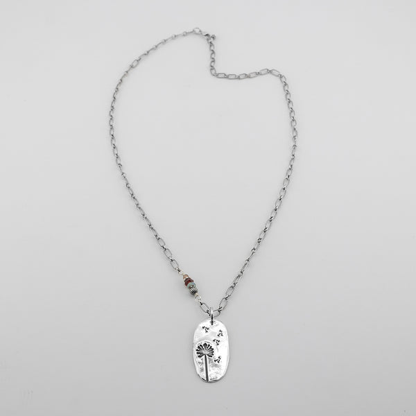 Uniquely stamped dandelion fine silver pendant, created as a reminder of Matthew 11:28. "Come to me, all you who are weary and burdened, and I wi...