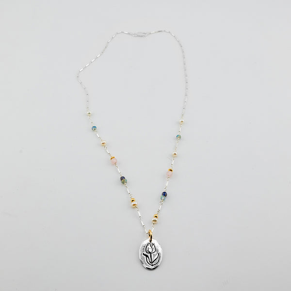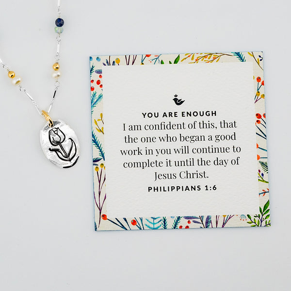 This fine silver pendant features an elegant tulip—a symbol of worthiness and the beautiful truth that in Christ, you are already enough.
