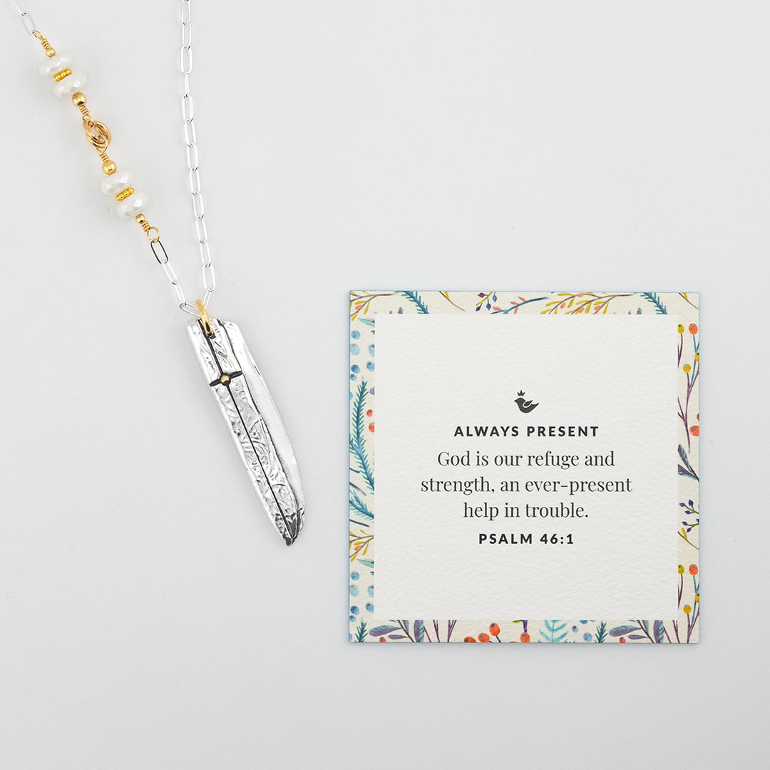 A striking one-of-a-kind design, this handcrafted necklace features a fine silver cross pendant detailed with a 22k gold accent—each mark and texture shaped by Tiffany Scott’s hands in our Virginia studio.