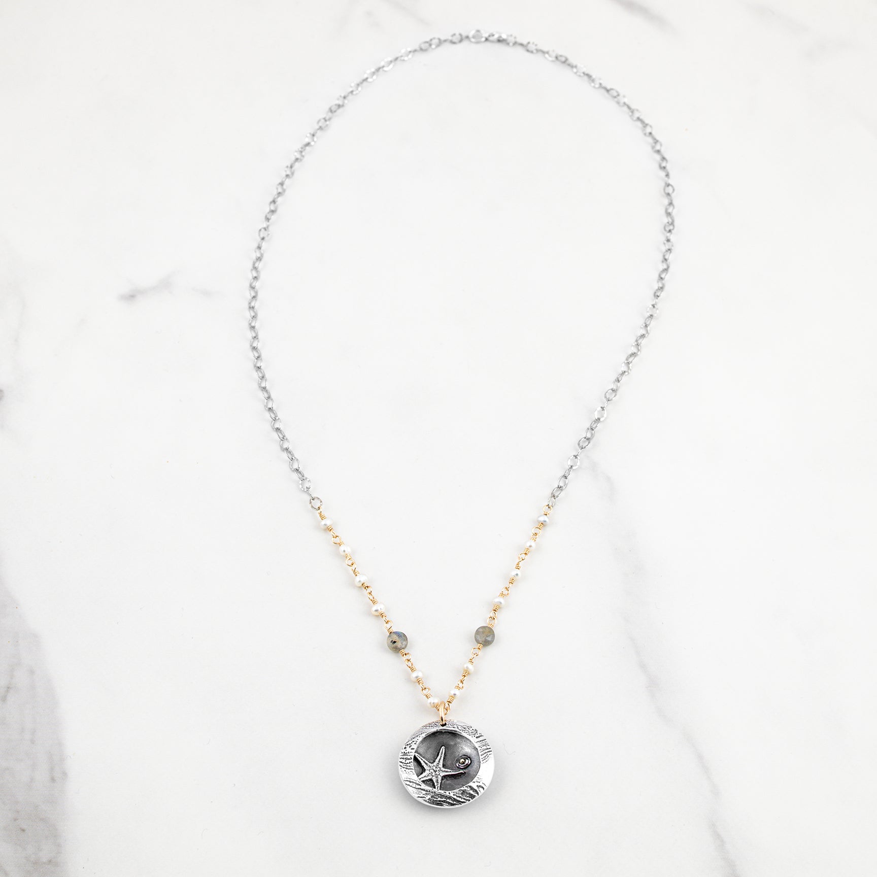 - Features genuine 22kt gold, freshwater pearl, labradorite, and gold-filled accents