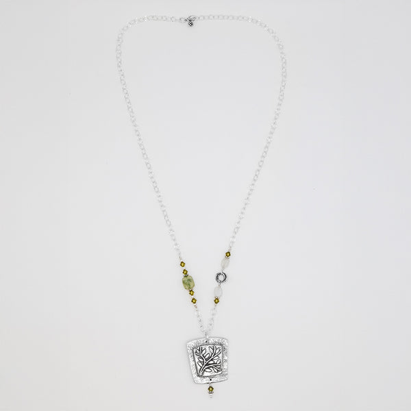 This delicate beauty serves as a reminder to give our worries to God in prayer. Featuring an apatite cabochon, this adjustable necklace is a love...