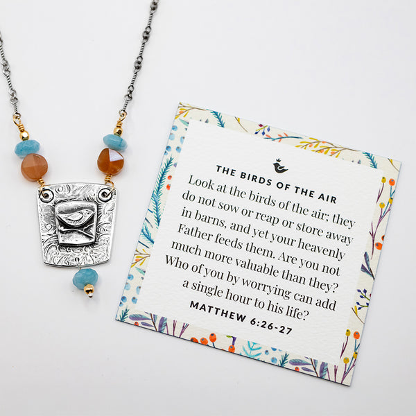 This beautifully layered fine silver pendant features a delicate sparrow—an everyday reminder that if God cares for the birds, He certainly cares ...