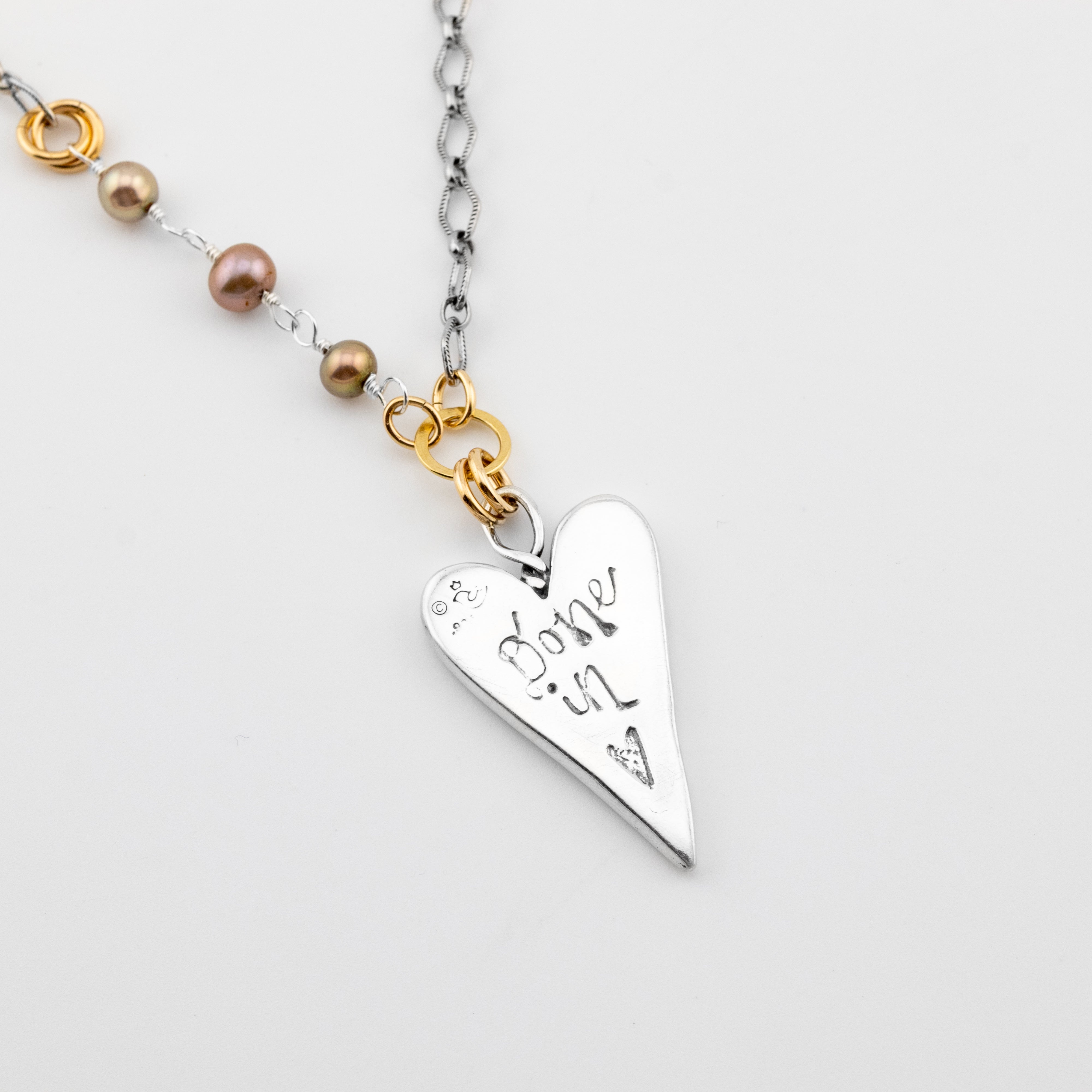 This sterling pendant features a heart outlined in trailing vines. Just as vines grow quickly and cling to almost any surface, love has the ability to spread rapidly through our lives. We should aim to let our love emanate from us like a vine, covering every aspect of our lives. May the vines on this piece help you remember to weave love into every part of your life, so that all you do can be done in love.