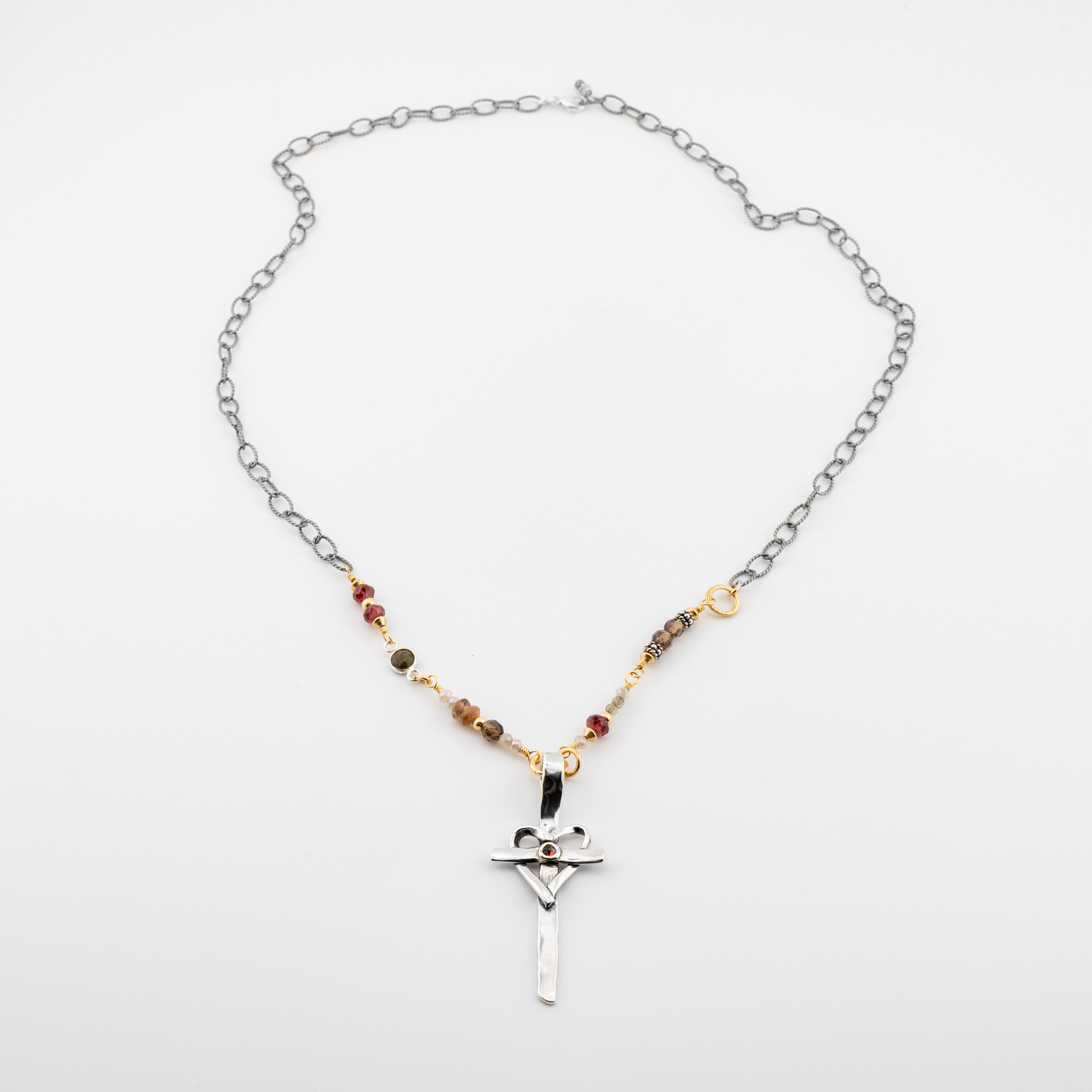 Carved cross entwined with a heart, this beautifully unique pendant was created to be a visual representation of the steadfast love of God. Psalm 136 repeats the phrase, "his steadfast love endures forever" 26 times, so wear this piece as your reminder to give thanks and remember His love for you is never-ending!
