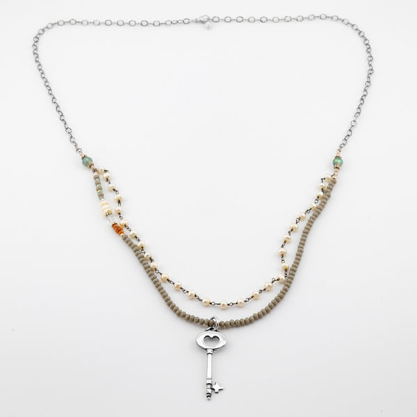 - Features genuine freshwater pearl, apatite, and smokey quartz