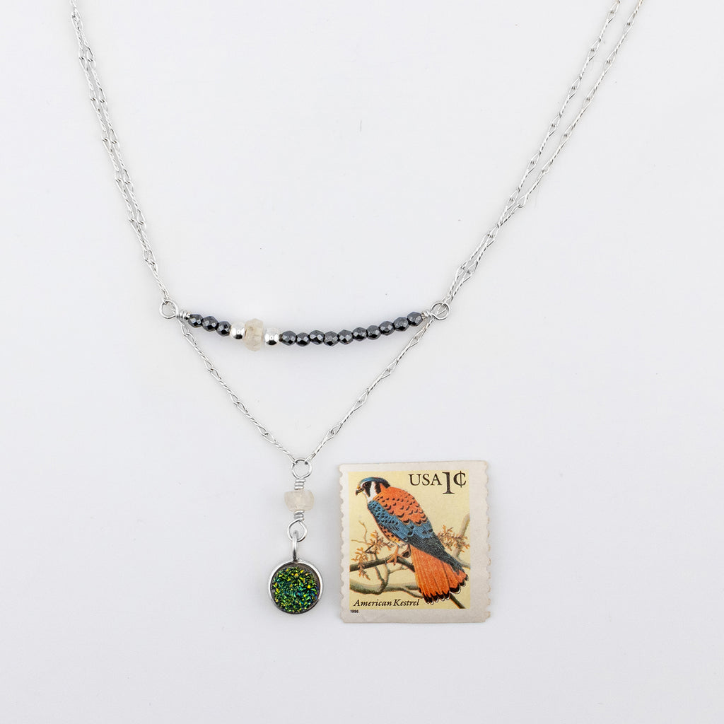 A beautiful multi colored druzy, when you wear this necklace, may it remind you of the wonder you feel when you look up at the stars, reveling in the majesty of your Creator.