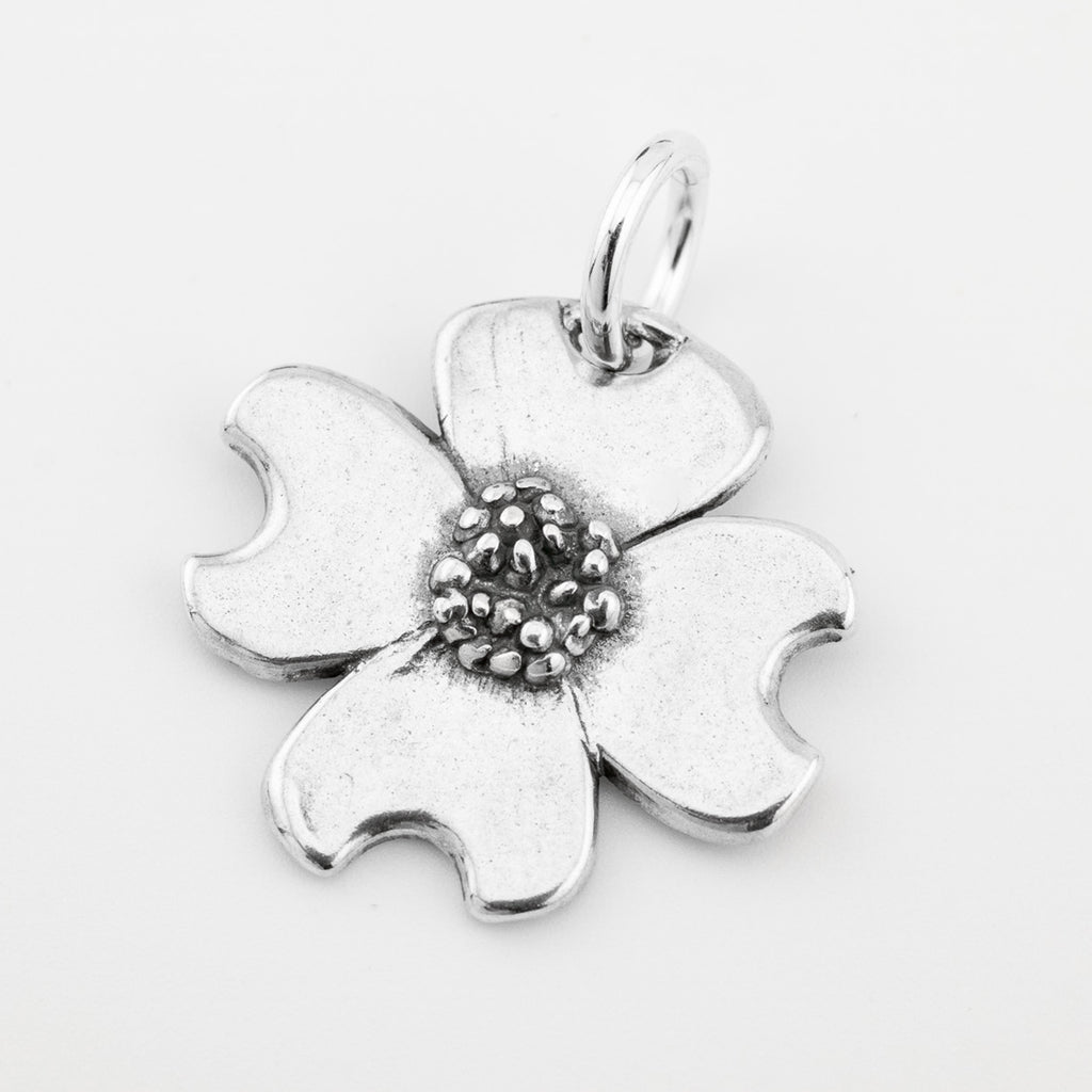 Wear this sweet dogwood pendant as a reminder of Jesus' sacrifice for you. The delicate petals of the flower create the shape of a cross, with small holes on its edge reminding you of the nails that pierced His hands and feet. The center of the flower symbolizes the crown of thorns placed on his head.