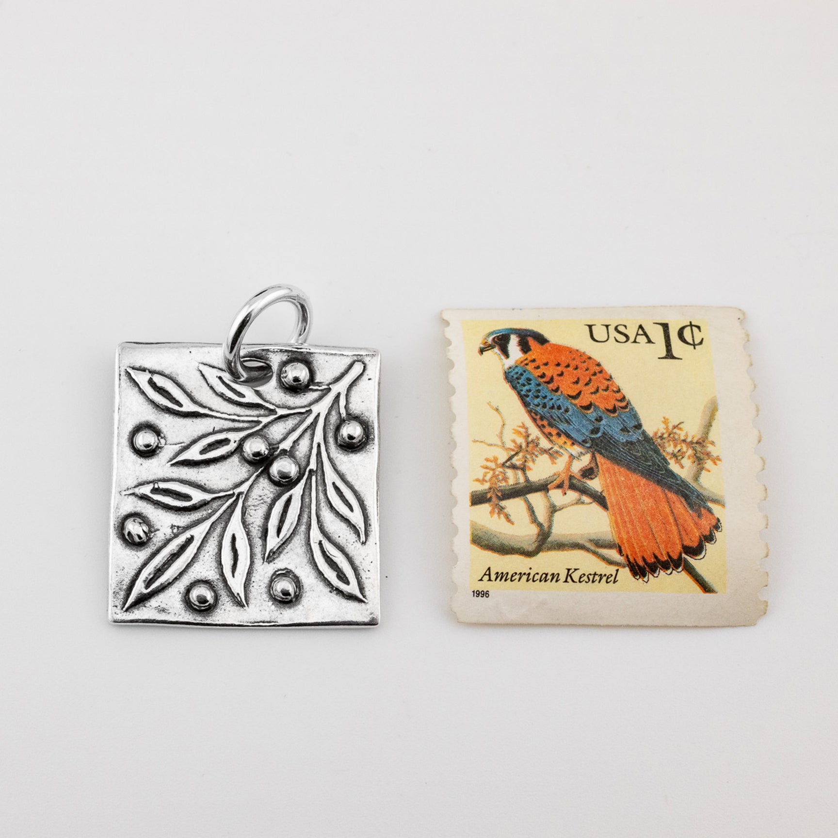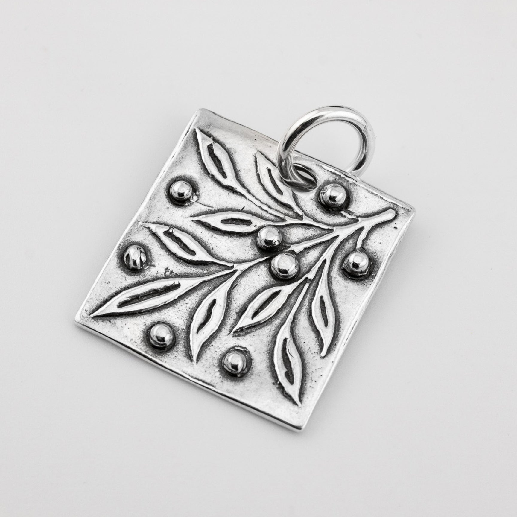 Oxidized sterling silver pendant with leaves and vines, a wearable reminder of John 15:5, “I am the vine; you are the branches. If a man remains in me and I in him, he will bear much fruit; apart from me you can do nothing.”