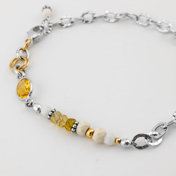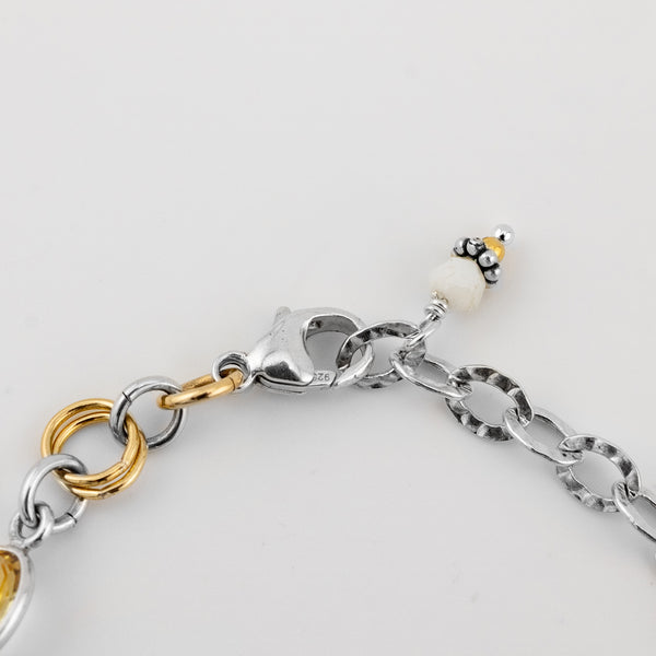 A unique bracelet that features a sunflower, created to remind you that just as the sunflower raises its head towards the light for sustenance and strength, we must look to our Creator for healing and salvation. Inspired by Jeremiah 17:14, "Heal me, O Lord, and I shall be healed; save me, and I shall be saved; for you are the one I praise."