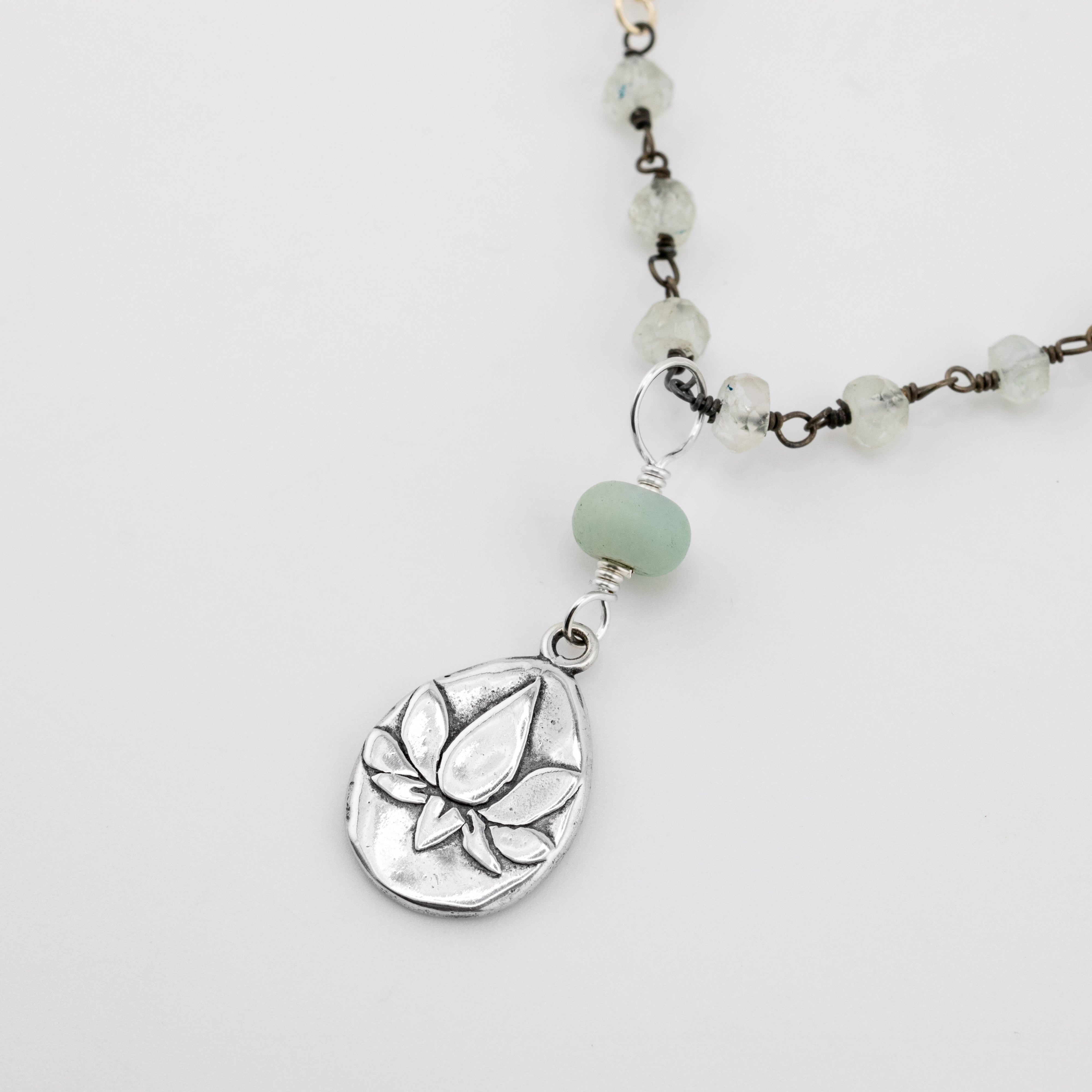 This pendant features a beautiful blooming lotus. Symbolic of mindfulness, this sterling lotus was created to be your daily reminder to pause and meditate on the truth of God’s Word.