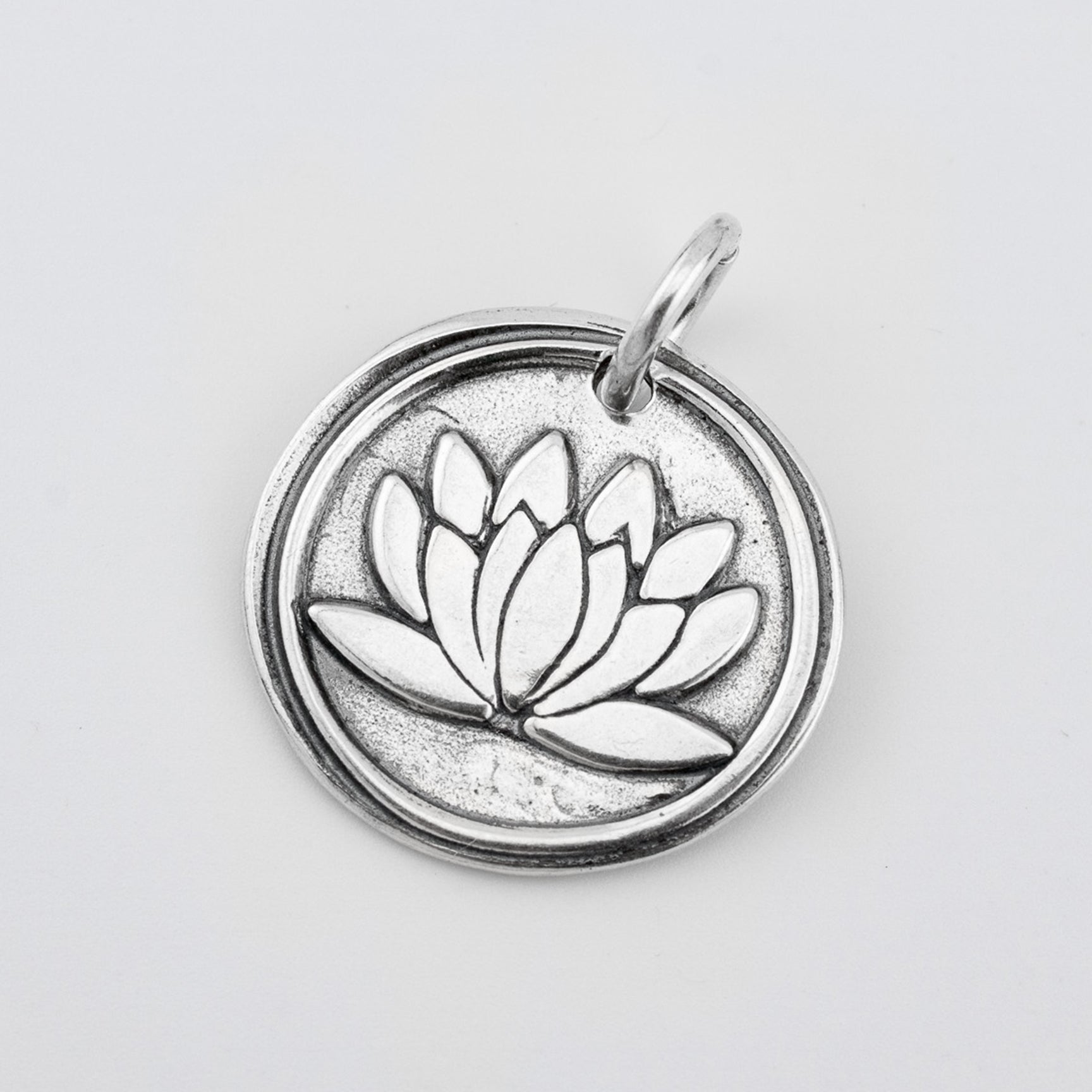 This pendant features a beautiful blooming lotus. Symbolic of mindfulness, this sterling lotus was created to be your daily reminder to pause and meditate on the truth of God’s Word.