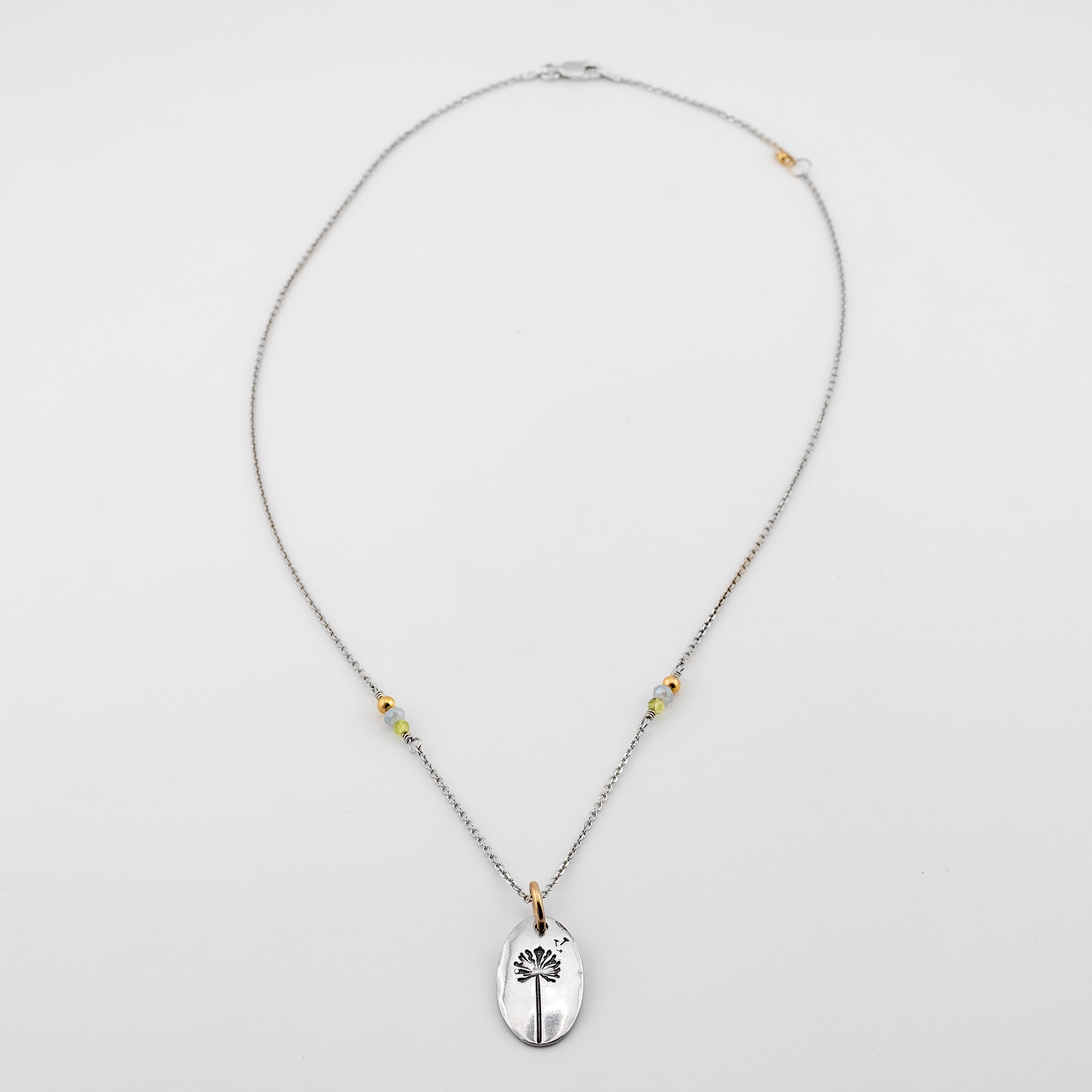 A unique dandelion sterling silver pendant, created as a reminder of Matthew 11:28. "Come to me, all you who are weary and burdened, and I will give you rest."
