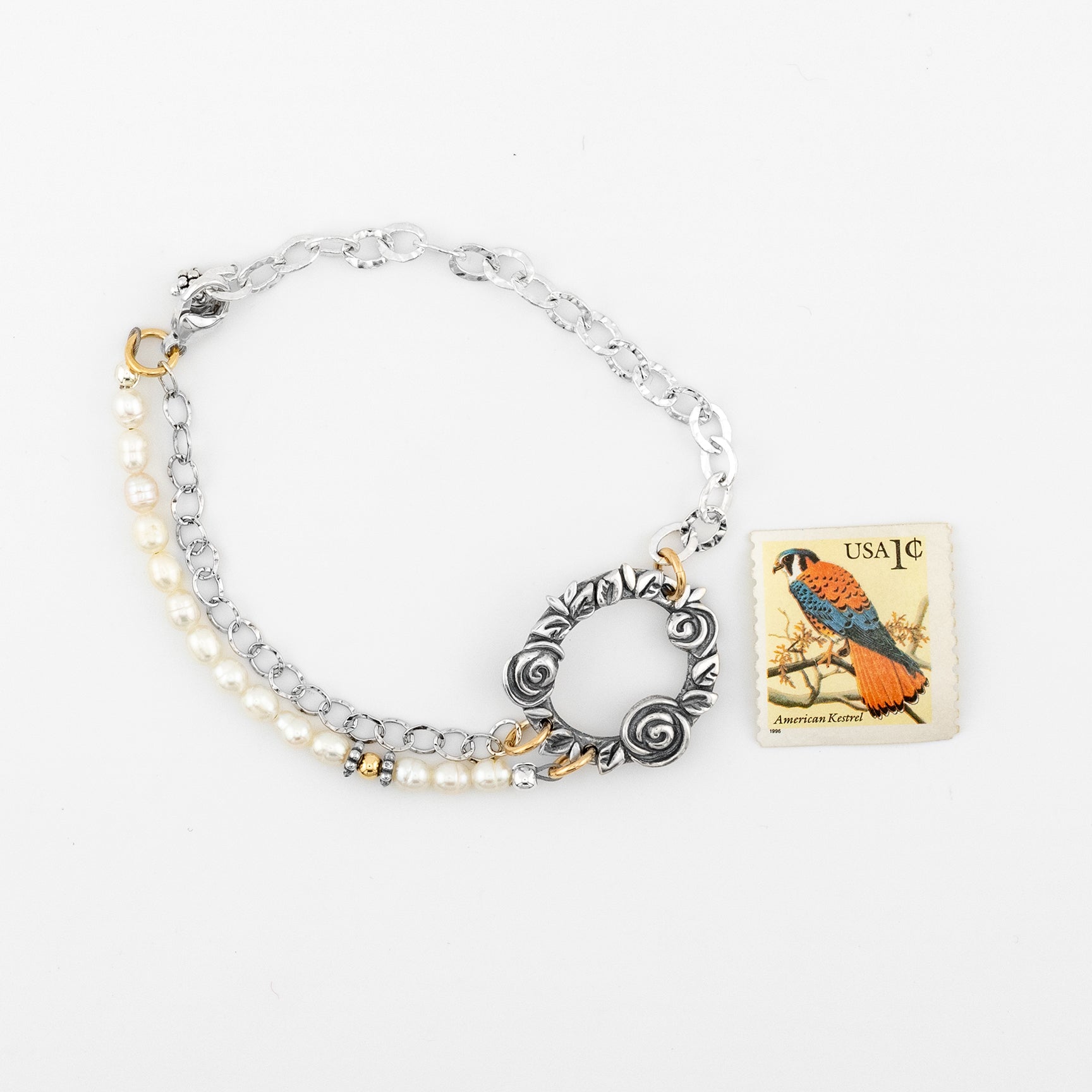 This beautifully detailed wreath bracelet features three roses, representing the three actions of Romans 12:12. Finished with a gold-filled jump ring. Wear it as your daily reminder to be joyful in hope, patient in affliction, and faithful in prayer.