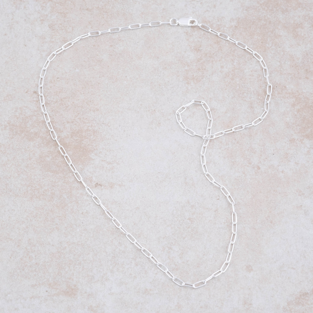 A dainty sterling silver chain created with elongated oval links, simple but elegant! Pair with any Holly Lane pendant, charm or slide.