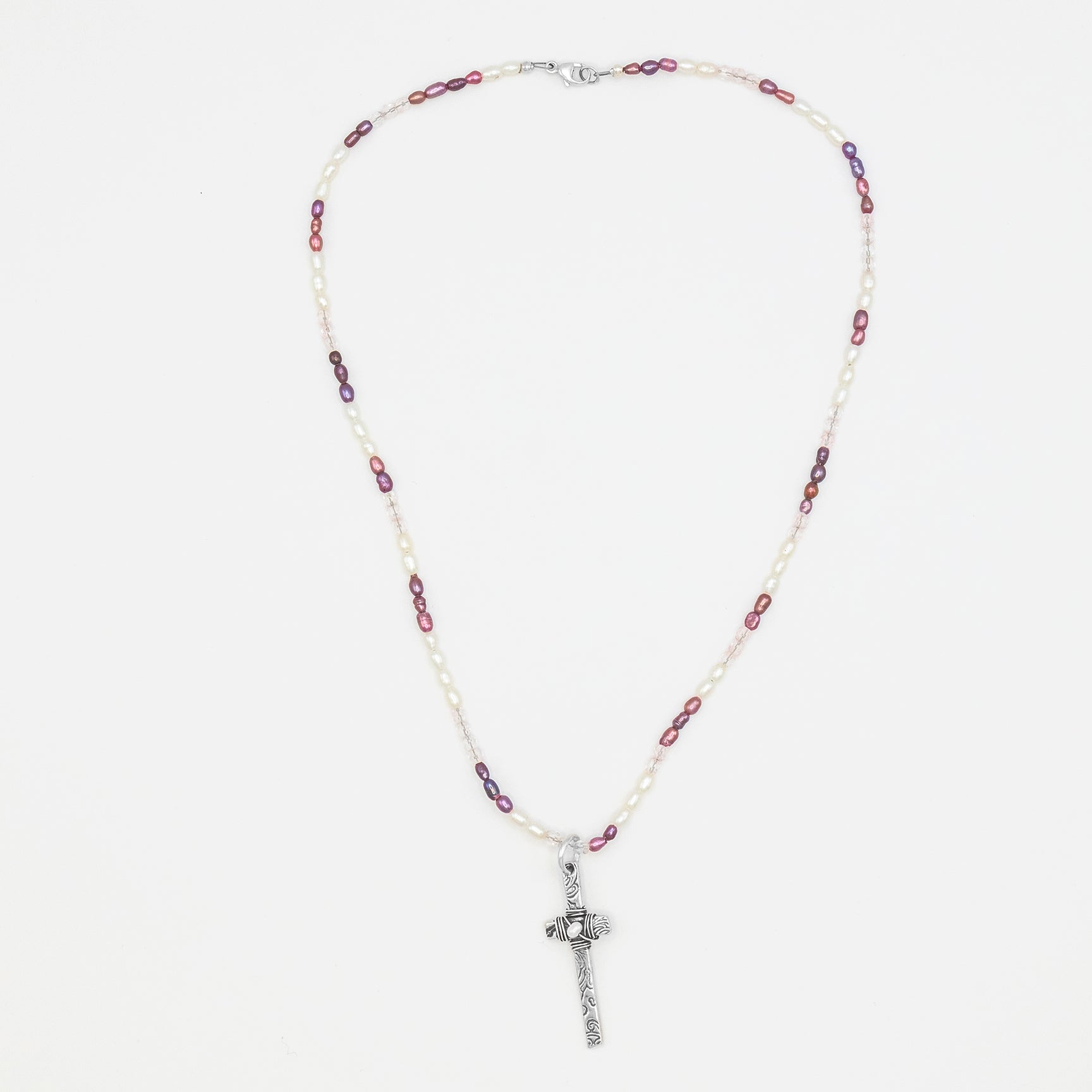 The Pearl Beaded Grace Cross Necklace is a tender reminder that God’s strength is revealed most clearly in our moments of weakness. Inspired by 2 Corinthians 12:9, this one-of-a-kind piece reflects the quiet power of grace that carries us when we feel worn, weary, or unsure. The soft luster of freshwater pearls and delicate crystal accents symbolize purity, humility, and endurance, while the sterling silver cross—hand-wrapped with intention—bears the word grace as a lasting declaration of God’s sustaining love. Thoughtfully handcrafted and truly one of a kind, this necklace is meant to be worn as a daily reminder that His grace is always enough.
